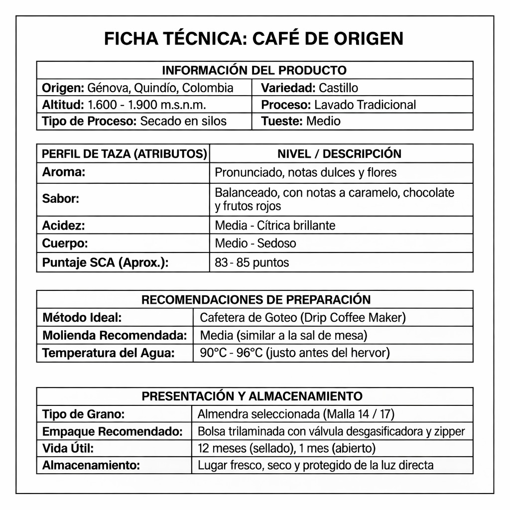 Nos despierta, nos activa y es absolutamente inconfundible. Nuestro café de origen variedad castillo; cultivado en una altura montañosa privilegiada que te hace transportar por los paisajes cafeteros; a través de lo natural y exótico, lo cual lo hace en un equilibrio perfecto.